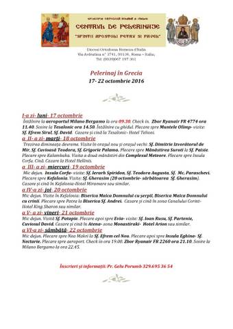 Pelerinaj ROMANO DI LOMBARDIA GRECIA 17- 22 OCT 2016