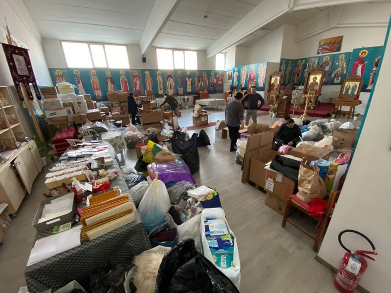 Cele 9 tone de haine, 2,5 tone de alimente cu termen de valabilitate mai generos, 700 kilograme de medicamente și produse de igienă personală și 37 de saltele au ca destinație Arhiepiscopia Iașilor, implicată în ajutorarea refugiaților.