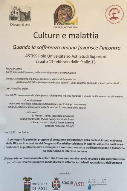 Sâmbătă 11 Februarie 2017 va avea loc la Asti (Piazzale De Andrè ) conferința " Quando la sofferenza umana favorisce l'incontro "