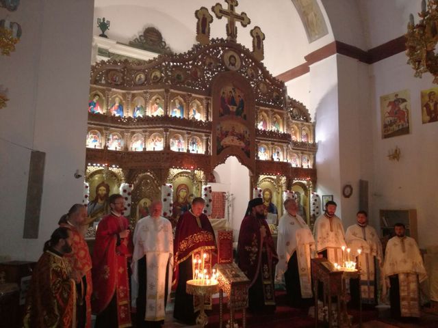 Astfel, în seara zilei de 28 octombrie s-a săvârșit slujba Vecerniei, sub protia Părintelui Vicar Atanasie, în sobor din care au făcut parte preoții de la parohiile din Protopopiat. Bucuria împreună slujirii a fost desăvârșită de aducerea raclei cu Sfintele Moaște și papucelul Sfântului Efrem cel Nou, de la Centrul Eparhial al Episcopiei noastre, care au rămas vreme de trei zile.