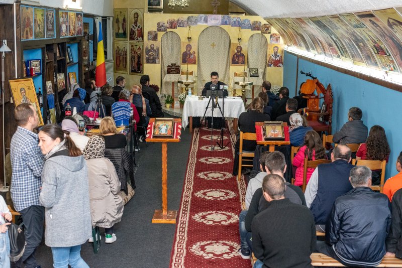 Orice început este dificil însă ne aducem aminte cu bucurie și emoție de localul comercial de 30 de metri pătrați care ne-a fost biserică timp de 10 luni de zile până când nu am mai „încăput”acolo. Am plecat de la zero și încet, încet prin bunătatea și devoțiunea credincioșilor biserica a fost înzestrată cu toate cele necesare slujirii liturgice: Sfânta masă și Sfânta Cruce, chivotul sfintele vase, cristelniță, candele, icoane, închinătoare, mochetă, steaguri, etc.