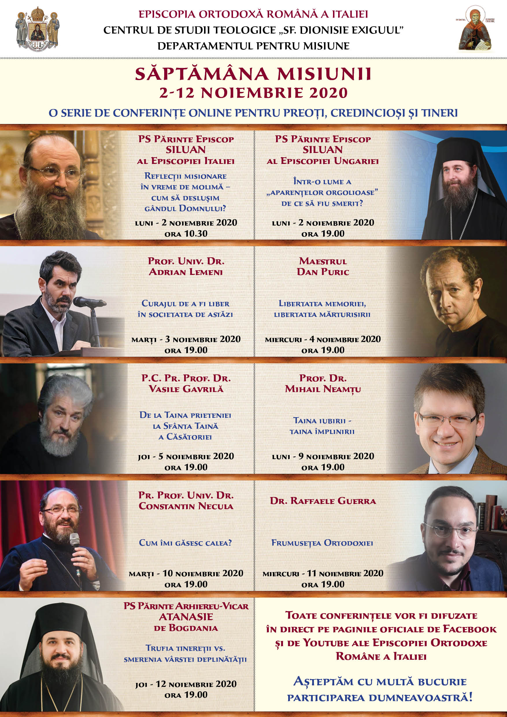 2-12 NOIEMBRIE 2020 O SERIE DE CONFERINȚE ONLINE PENTRU PREOȚI, CREDINCIOȘI ȘI TINERI