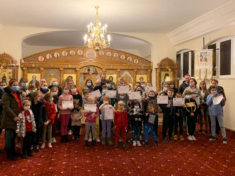 Seara a fost încheiată cu un moment festiv, unde copilașii care au participat la I Modul al activităților Centrului de Creație, au primit câte o diplomă de încurajare și o mică atenție ca apreciere a stăruinței, a dragostei și a curajului depus pe parcursul a două luni de lecții săptămânale și au primit felicitări din partea pr. Roman Ionascu și a doamnelor învățătoare care s-au ocupat de organizarea atelierelor.