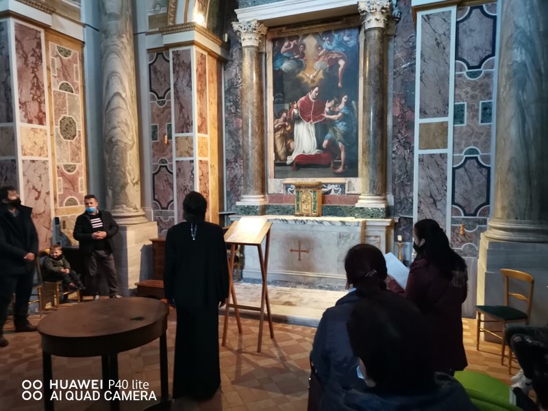 După-amiază procesiunea a continuat în Roma, spre locurile natale ale Sfântului ocrotitor, la Mănăstirea "San Gregorio al Celio". În cadrul Slujbei Paraclisului Sfântului Ierarh Grigorie Dialogul, credincioșii au putut înălța rugăciuni pentru pacea lumii și pentru încetarea pandemiei, după modelul celor rostite cu prilejul procesiunii de la sfârșitul secolului al VI-lea cu icoana Maicii Domnului "Salus Populi Romani", când Sfântul Grigorie, în calitate de Papă al Romei, a organizat o mare procesiune în care toți credincioșii s-au rugat pentru încetarea epidemiei din acele timpuri, primind răspunsul lui Dumnezeu prin glasul Sfântului Arhanghel Mihail, minune rămasă până astăzi și în istoria Castelului Sant'Angelo din Roma.