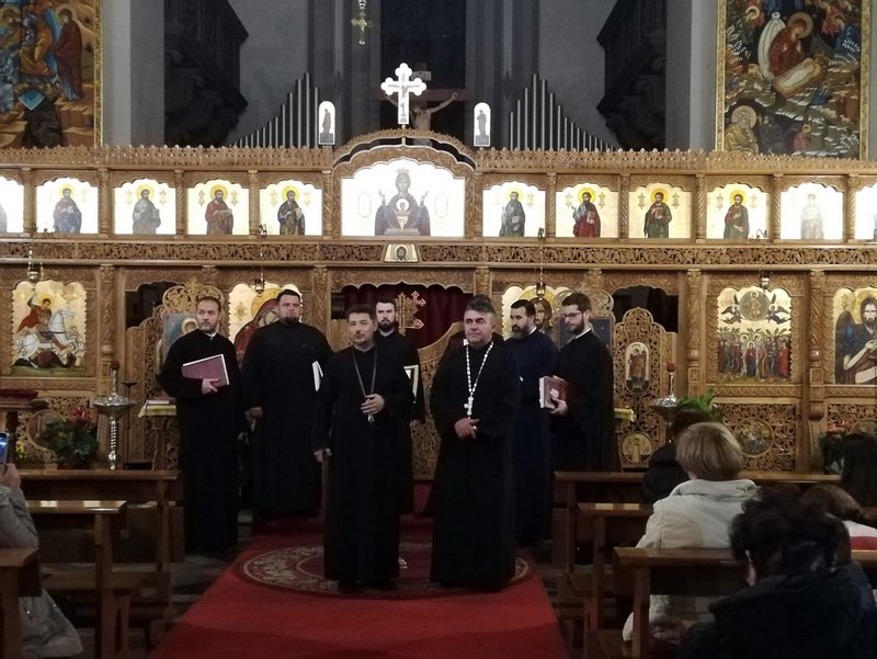 Concertul a fost oferit de Corul Psalmodia Varadensis al Facultății de Teologie ortodoxă din Oradea dirijată de pr. prof. dr. Mihai Brie.