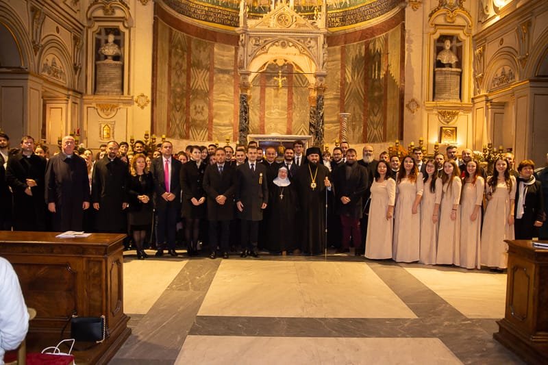 Cu ajutorul Domnului, cu binecuvântarea Preasfințitului Părinte Episcop Siluan, al Episcopiei Ortodoxe Române a Italiei, și în prezența Preasfințitului Părinte Arhiereu-Vicar Atanasie de Bogdania, sâmbătă, 30 noiembrie 2019, la Basilica „Santa Cecilia” din Roma, a avut loc Concertul de colinde și cântece tradiționale românești, organizat de către Episcopia Ortodoxă Română a Italiei, în colaborare cu Mănăstirea benedictină „Santa Cecilia” din Roma. Evenimentul artistic a fost prilejuit atât de prăznuirea Sfântului Apostol Andrei, cel Întâi chemat, Ocrotitorul României și al Episcopiei noastre, cât și de Ziua Națională a țării noastre.