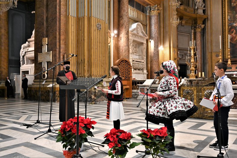 Copiii și adolescenții români din cinci parohii ortodoxe și catolice din regiuneaLazio au colindat sâmbătă, 18 decembrie 2021, în centrul Romei, la Basilica “Santi XII Apostoli” din Roma, în cadrul Concertului de Crăciun “Tradiții prin ochi de copii”.