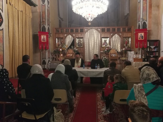 Cu binecuvântarea Preasfințitului Episcopului nostru Siluan, in ziua de 9 noiembrie, orele 18.00, s-a săvârșit Slujba Vecerniei de către Preacuviosul Părinte Arhimandrit Nicodim, consilier al sectorului de misiune din Arhiepiscopia Iașiului., după care a susținut conferința cu tema: "Mărturisirea credinței in contextul lumii de azi".