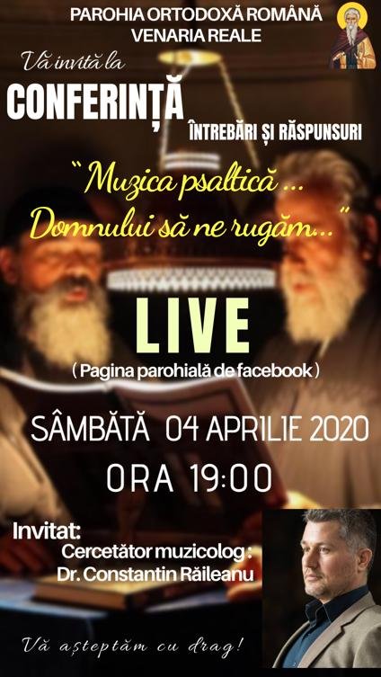 Cu Binecuvântarea Preasfințitului Părintelui nostru Episcop Siluan și din Încredințarea Preasfințitului Părinte Atanasie de Bogdania, Arhiereul Vicar al Episcopiei Ortodoxe Române a Italiei, Parohia “ Sfântul Cuvios Ilarion cel Mare” din Venaria Reale, găzduiește o serie de Conferințe Duhovnicești Online care privesc atât perioada postului în care ne aflăm cât și creșterea duhovnicească a credincioșilor săi în aceste vremuri greu încercate.