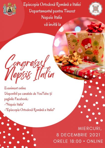 Cu binecuvântarea Preasfințitului Siluan și prin purtarea de grijă a Preasfințitului Atanasie de Bogdania, în data de 8 decembrie a avut loc Congresul Nepsis Italia, un eveniment organizat online de către Departamentul de Tineret al EORI și echipa Nepsis Italia. Acesta a fost moderat de către pr. Andrei Vizitiu, colaborator al departamentului. Tinerii Nepsis, Mădălina și Gabriel, i-au intervievat pe episcopii noștri dar și alți invitați, precum Gabriela Pipirig, soții Neguț, Cristina și Cristian și pe Laura Dinu, care au transmis tinerilor cuvinte folositoare și îndrumătoare.