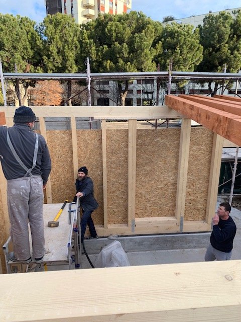 Cu ajutorul Bunului Dumnezeu și cu mijlocirile Sfântului Proroc Ilie și a Sfântului Ierarh Zenon, în zilele acestea s-a terminat structura și s-au montat grinzile la parterul clopotniței bisericii parohiale.