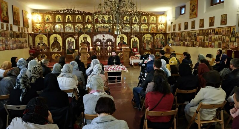 În parohia "Înălțarea Sfintei Cruci" din Roma a avut loc în Duminica Sfintei Cruci o convorbire duhovnicească cu părintele stareț Nicodim de la Mănăstirea Bunavestire din Mirabela Eclano.