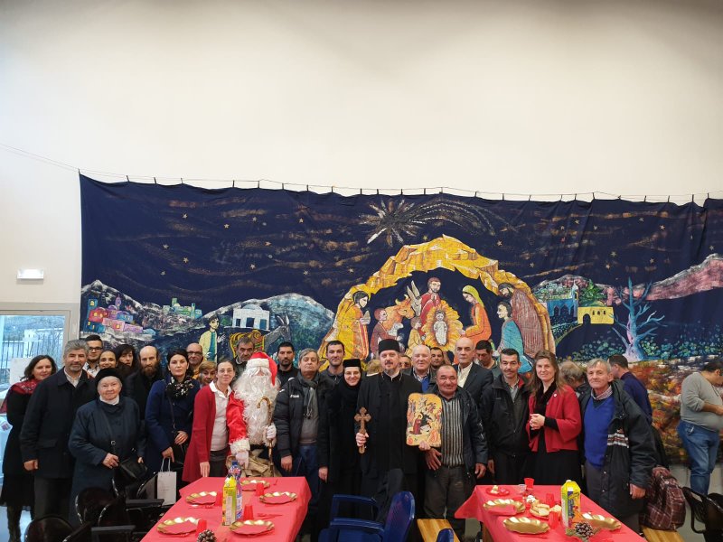 În toate duminicile din fiecare post la „biserica arsă” din Tor Lupara se face o evanghelizare a săracilor susținută de o masă caldă. Marile sărbători sunt organizate din perspectivă socială împreună cu primăria locală care ne pune la dispoziție spațiul pentru misiune. Anul acesta s-a organizat această masă de Sfânt Crăciun împreună cu comunitatea Sant’Egidio care se îngrijește de bolnavii din spitalul orașului „Nomentana Hospital”. Săracii au colindat enoriașii și enoriașii au colindat săracii într-o atmosferă de mare bucurie, lucru care a impresionat comunitate italiană la masa de prânz. Părintele Bogdan Petre și părintele Alexandru Apetrei au înmânat felicitările scrise din partea enoriașilor din parohia „Botezul Domnului” și au împărțit cadouri atât românilor cât și italienilor așezați la masa festivă. Sora Mihaela Ciolacu împreună cu voluntarii au fost cei ce au pregătit meniurile tradiționale pe care le-au apreciat mult și oaspeții italieni.
