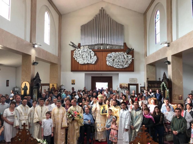 După ce a fost întâmpinat cu pâine și sare, după tradiționalul obicei românesc, înainte de Sfânta Liturghie, Preasfințitul Părinte Atanasie de Bogdania a hirotesit un ipodiacon și a binecuvântat doi paraclisieri.