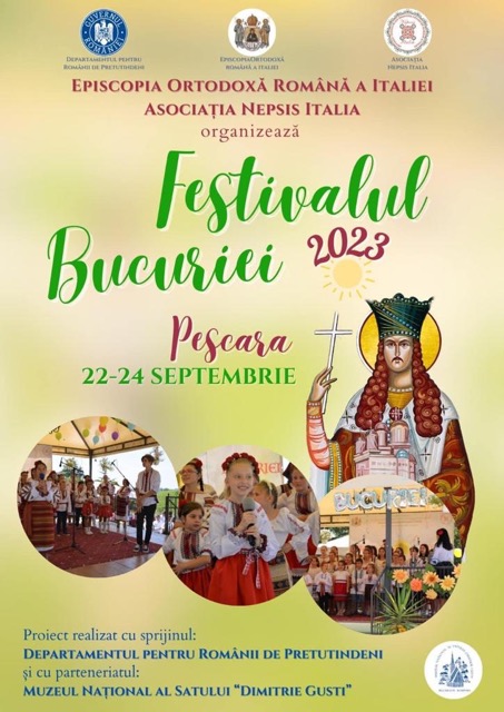 În perioada 22-24 Septembrie va debuta cea de-a XV- ediție a Festivalului Bucuriei, etapa eparhială, în Episcopia Ortodoxă Română a Italiei. Evenimentul unde sunt așteptați peste 600 de tineri și însoțitori se va desfășura pe parcursul a două zile, sâmbătă, 23 Septembrie începând cu orele 11.00, respectiv, duminică, 24 Septembrie începând cu ora 8.00.