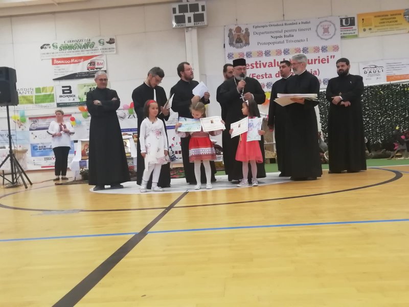 Duminică, 26 mai 2019, în protopopiatul Triveneto I, a fost zi de mare bucurie! În straie de sărbătoare românești, cu frumoase poezii și cântece și cu multe emoții, toți copiii din parohiile noastre au participat la Festivalul Bucuriei, ce s-a desfășurat în parohia Dolo, etapa pe protopopiat. Ca în fiecare an, toți au dorit sa-și arate talentele la secțiile artistice, desen și sport. La acest frumos eveniment ne-au onorat cu prezența și autoritățile locale prin persoana domnului primar Alberto Polo, și a câtorva reprezentanți ai bisericii catolice din localitate. La final părintele protopop Avram Matei, a felicitat toți participanții, îndemnându-i, ca în continuare să nu-și uite rădăcinile neamului nostru, să ducă mai departe valorile strămoșești de credință, cultură și neam. Iar la final au fost premiați cei mai talentați copii, urmând ca unii dintre ei să ne reprezinte protopopiatul și la etapa eparhială. Dăm slavă bunului Dumnezeu pentru toate, și mulțumiri tuturor celor care s-au implicat în buna desfășurare a evenimentului!