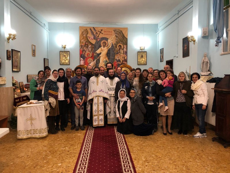 Astfel, joi seara, în ajunul Prăznuirii Sfintei Monica, a fost săvârșită Slujba Vecerniei unită cu Litia, la care au participat Părintele Paroh Daniel Simionescu, Părintele Vasile Radu, de la Parohia Sfânta Mare Muceniță Tecla, din Velletri și câțiva membri ai Grupului Psaltic Sfântul Dionisie Exiguul.