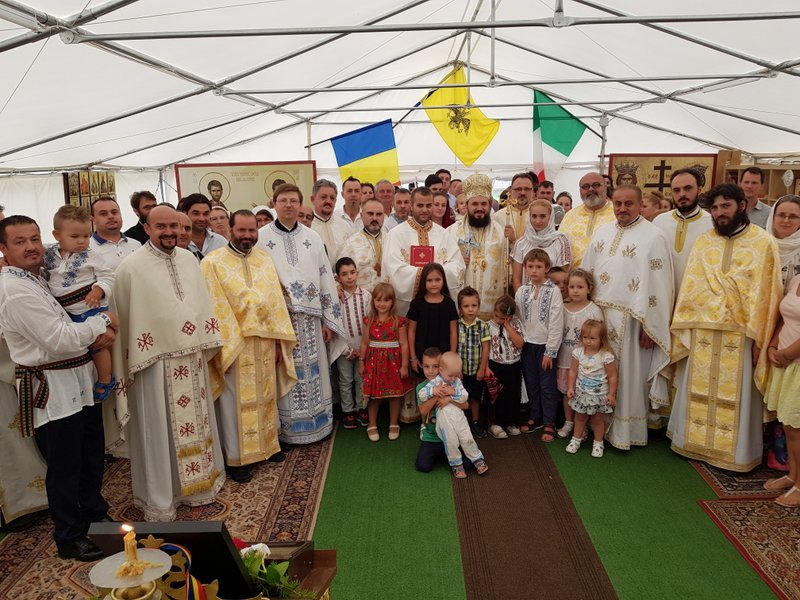 Bucuria împreună slujirii a fost deplină în ziua de 01 septembrie 2018, zi în care parohia noastră, îşi sărbătoreşte hramul. Într-o atmosferă de aleasă bucurie duhovnicească ,cu binecuvântarea Preasfințitului Părinte SILUAN, Episcopul Episcopiei Ortodoxe Române a Italiei, ziua a început cu întâmpinarea Preasfințitului Părinte ATANASIE de Bogdania, episcopul vicar al episcopiei noastre, sub protia căruia, un sobor de 15 preoți şi diaconi au săvârșit Sfânta Liturghie. Cuvântul de învățătură a fost rostit de Preasfințitul Părinte ATANASIE de Bogdania, care după tâlcuirea celor două pericope evanghelice , a evocat aspecte importante din viața Sfântului Dionisie Exiguul, arătând importanța cercetărilor sale în ceea ce priveşte stabilirea calendarului bisericesc dar şi activitatea ştiințifica pe care Sfântul a desfăşurat-o pe tărâmul matematicii, fiind autorul unor metode de calcul ce au simplificat stabilirea datei de sărbătorire a Paştilor. Sfânta Liturghie a continuat cu hirotonia întru preot a tânărului diacon Ioan Ovidiu, pe seama parohiei Lecce din protopopiatul Puglia-Basilicata. După încheierea Sfintei Liturghii, toți cei prezenți au fost invitați la tradiționala masă a bucuriei, pe care membri parohiei Fiumicino au pregătit-o în cinstea acestui însemnat eveniment.
