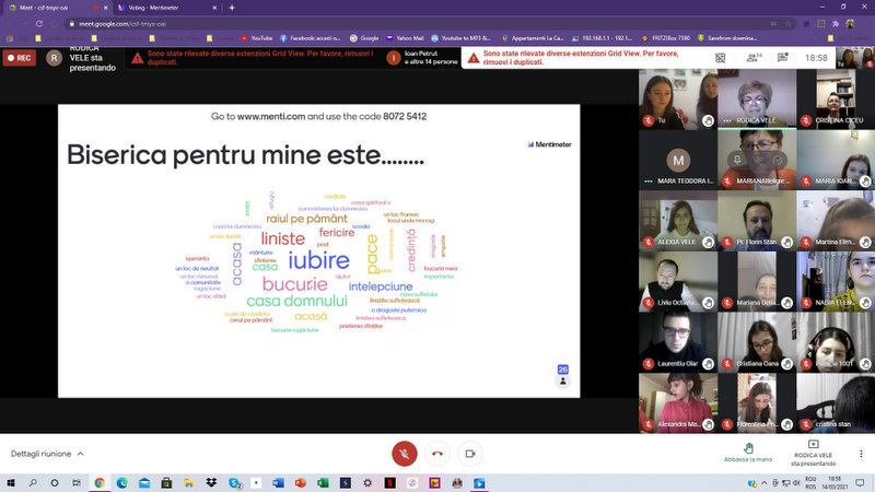 În continuarea proiectului „Biserica, pridvor de dor și împlinire”, din cadrul concursului național catehetic „Biserica - familia românilor de pretutindeni”, tinerii parohiilor Sfântul Antonie cel Mare din Lucca și Înălțarea Domnului din Târgu Lăpuș s-au întâlnit on-line în seara zilei de Duminică - 14 martie.