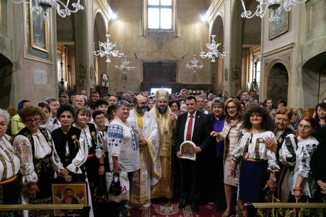 La sfârșit Liturghiei, Preasfinția Sa a felicitat pe Preacucernicul Părintele Paroh pentru lucrarea de pastorație și misiune desfășurată în această comunitate, care împlinește 10 ani de la înființarea ei prin binecuvântarea ierarhică primită.