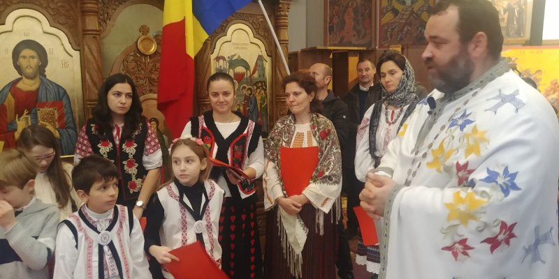 Ultima Duminică din luna Ianuarie, are pentru parohia noastră de la Prima Porta (Roma) o strălucire deosebită. Este înveşmântată, parcă, de un ecou prelungit al Sărbătorilor care încep cu Naşterea Domnului şi se sfârşesc cu Botezul Său. Este Duminica în care reverberaţia sfântă ce animă sufletul românesc, prin aniversarea marelui poet naţional, Mihai Eminescu- pe 15 Ianuarie şi comemorarea Micii Uniri, din 24 Ianurie, se manifestă şi în sufletele copiilor şi tinerilor de la Prima Porta care şi anul acesta au înobilat atmosfera de după Sfânta Liturghie prin cântc şi poem aniversar. Astfel, 30 de copii şi tineri au dăruit celor câteva zeci de persoane care au participat la micul spectacol, momente de bucurie şi emoţie din ceea ce Dumnezeu lăsat, ca daruri înalte, prin poetul-nepereche, Mihai Eminescu şi Mica Unirea de la 1859.