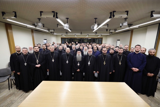 După săvârșirea slujbei de Te Deum, Preasfințitul Părinte Episcop Siluan a rostit un cuvânt de binecuvântare și de bun venit preoților participanți la cursuri.