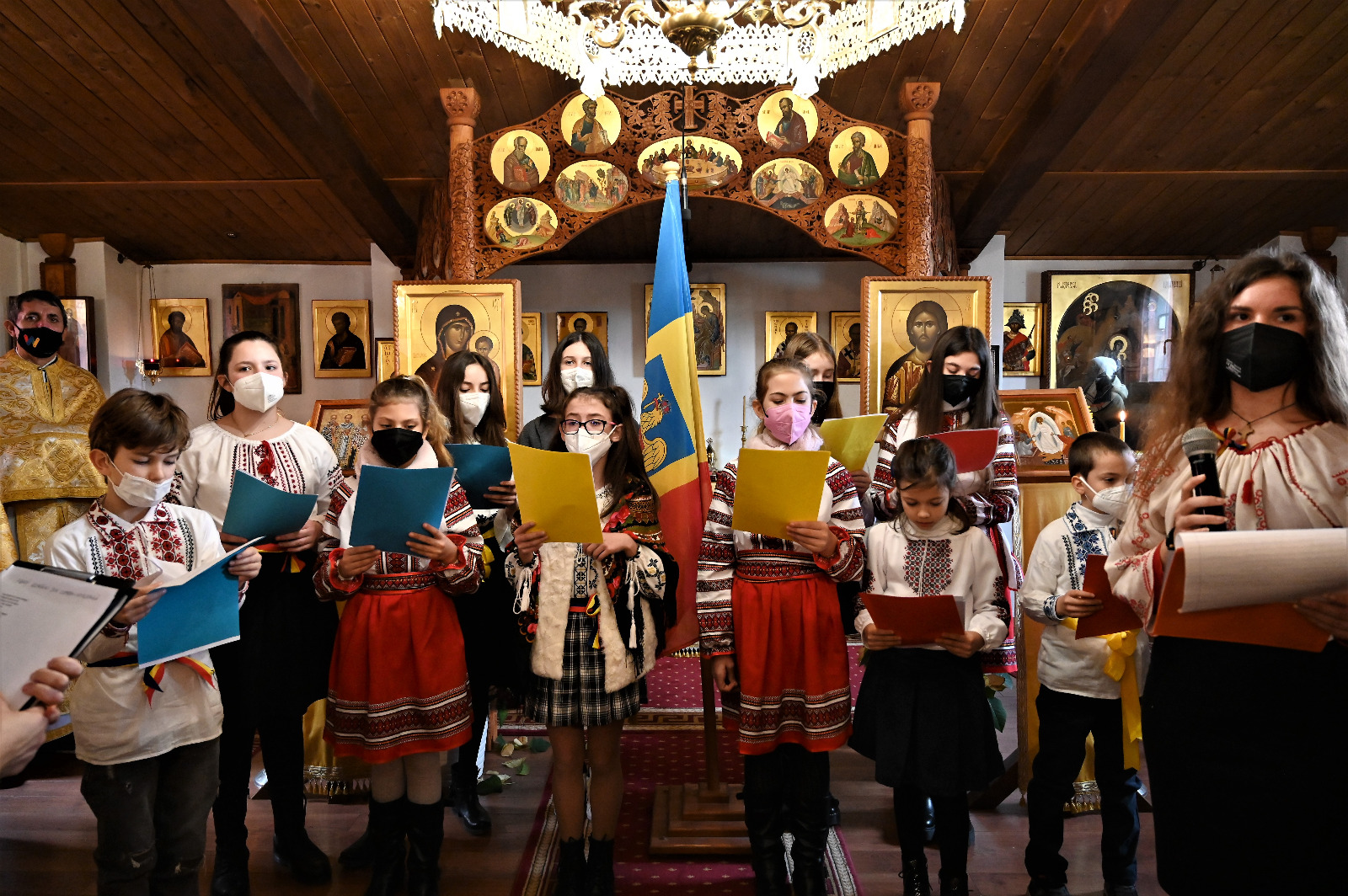 Imnul României,”Deșteaptă-te Române din somnul cel de moarte…” a fost intonat cu emoție de copiii și credincioșiii prezenți, unind intr-un singur glas dorul de țară.