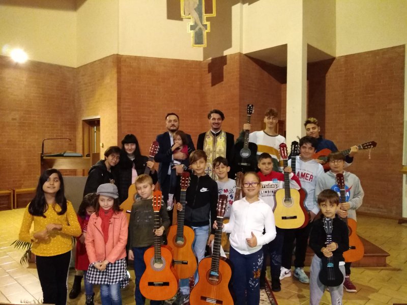 Astăzi, 30 octombrie 2019, 15 dintre tinerii Frătiei Nepsis din cadrul parohiei noastre, Sf. Ioan de la Râșca și Secu din Settimo Torinese, au avut bucuria de a participa la primul curs de chitară.