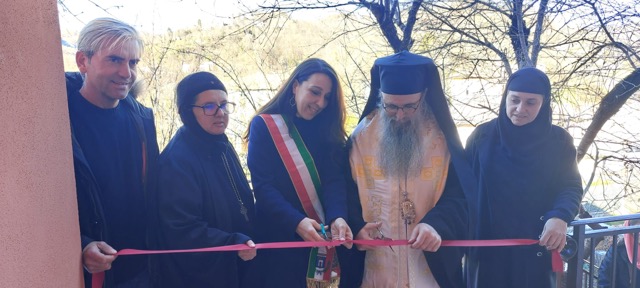 După slujbă, a fost inaugurat noul Centru Comunitar al mănăstirii, achiziționat cu sprijinul Departamentului pentru Românii de Pretutindeni. La inaugurare, alături de Preasfințitul Părinte Episcop Siluan, au fost prezente Maica Stareță Maria și doamna Velia Nazzarro, primarul localității Carsoli, care au tăiat panglica.