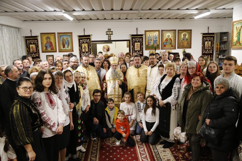 Ierarhul a asistat la slujba de Te Deum de mulțumire, după care a adresat credincioșilor un cuvânt de binecuvântare, mulțumind Domnului pentru toate binefacerile revărsate asupra comunității, în cei 10 ani de la înființare. Totodată, ierarhul i-a îndemnat pe cei prezenți la o pregătire duhovnicească a sufletului pentru a trăi cu folos praznicul Nașterii Domnului.