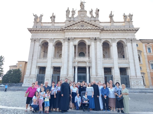 Duminică, 1 octombrie 2023, un grup de pelerini din parohia Înălțarea Sfintei Cruci din Roma s-au adunat în rugăciune, după Dumnezeiasca Liturghie, la Basilica Santa Croce in Gerusalemme.