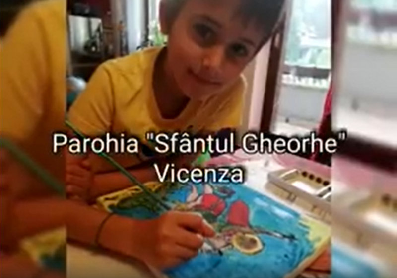 Copiii Parohiei "Sfântul Mare Mucenic Gheorghe" din Vicenza cu ajutorul părinţilor în săptămâna 15-22 martie 2020 au participat la activitatea de la distanţă "Pe urmele sfântului meu ocrotitor". Părinţii au fost îndemnaţi, dat fiind timpul liber petrecut cu copiii, să discute importanţa, semnificaţia şi istoria alegerii numelui de botez al copilului, precum şi vizionarea pozelor sau filmuleţului ceremoniei Sfântului Botez, iar apoi copiii să facă o cercetare a vieţii sfântului corespunzător şi să realizeze un desen sau să coloreze o icoană, şcolarii să scrie o scrisoare, o poezie sau o rugăciune dedicată sfântului ocrotitor. Cu ajutorul bunului Dumnezeu a fost realizat acest scurtmetraj ca o amintire frumoasă ce ne încălzeşte sufletele şi ne uneşte într-un cuget şi un gând.