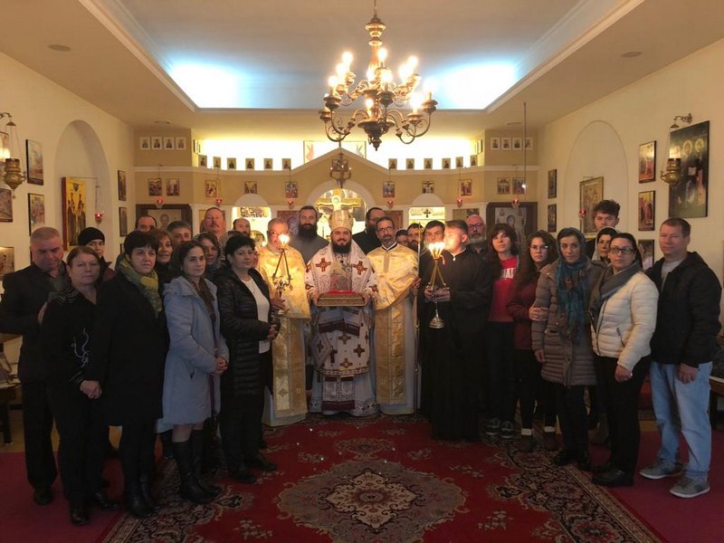 Preasfințitul Părinte Atanasie de Bogdania a săvârșit Dumnezeiasca Liturghie în Parohia „Sfântul Mare Mucenic Sebastian” din Pomezia | O părticică din Moaștele Sfântului ocrotitor al comunității au fost așezate spre închinare