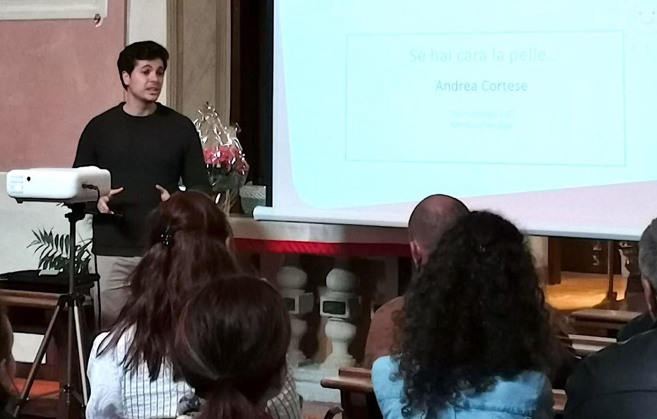 În cadrul întâlnirii, Andrea Cortese, medic dermatolog, a ilustrat celor prezenți, diferitele tipologii de tumori ale pielii, periculozitatea lor și factorii de risc pentru a le dezvolta.