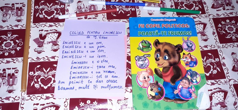 3. "Dor de Eminescu” - coordonat de profesoarele Aurica Munteanu și Elena Tărâță.