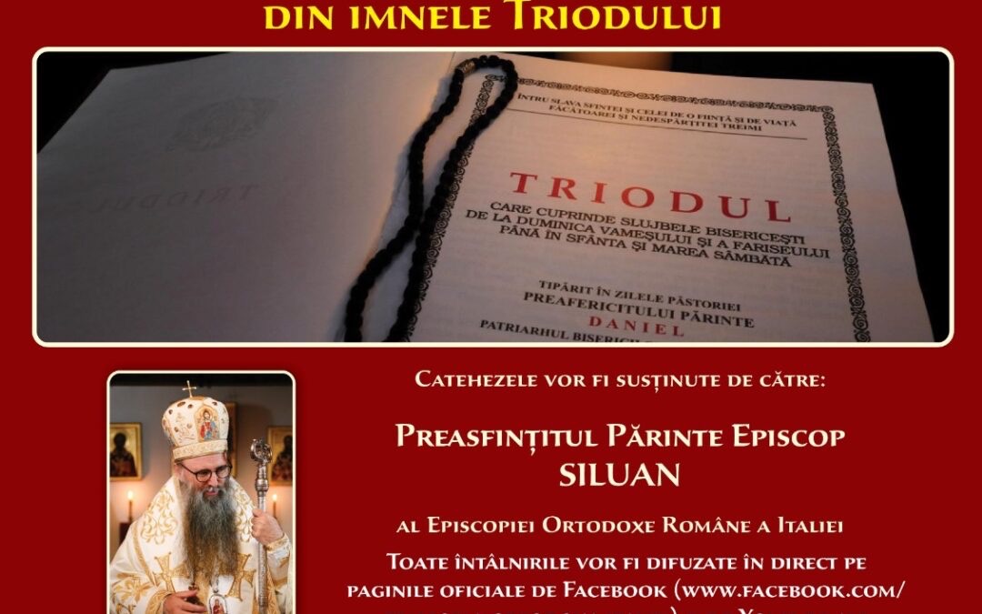 În seara zilei de sâmbătă, 1 aprilie 2023, Preasfințitul Părinte Episcop Siluan al Episcopiei Ortodoxe Române a Italiei a susținut cea de-a șasea cateheză din Postul Mare din seria „Degustări de suflet folositoare din imnele Triodului”.