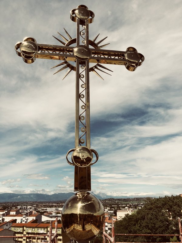 Cu ajutorul lui Dumnezeu în ajunul praznicului Înălțării Domnului nostru Iisus Hristos construcția bisericii și școlii parohiale din Pescara a ajuns la cota finală de 17 m.
