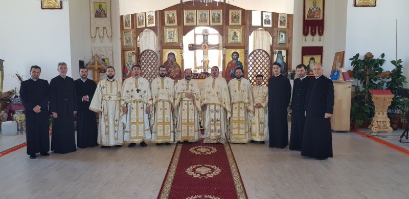 Adunarea protopopială a fost precedată de Sfânta Liturghie, oficiată de un sobor de cinci preoţi şi doi diaconi. La slujbă au fost prezenţi majoritatea clericilor din protopopiat, unii dintre ei dând răspunsurile la strană .