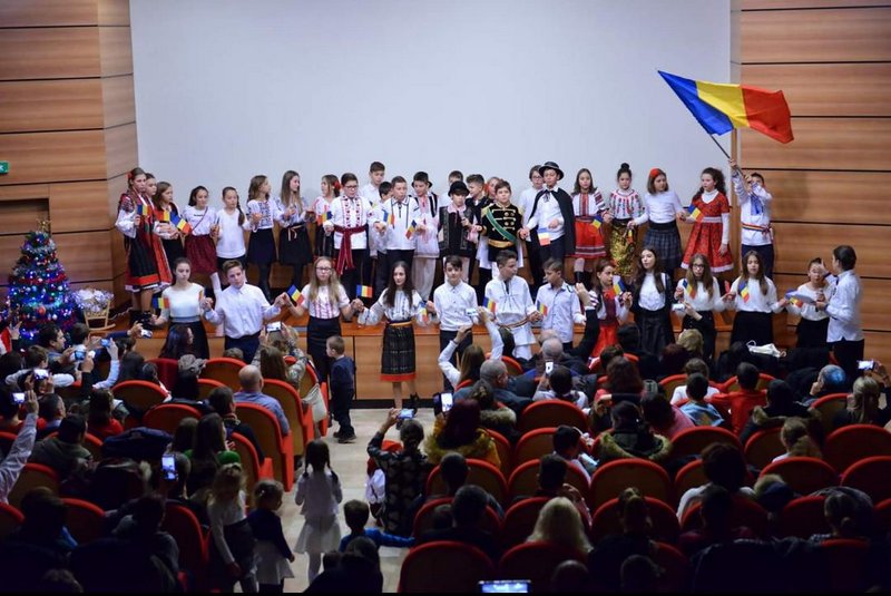 Alături de Moș Crăciun, cel ce a venit cu sacul plin, serbarea de Crăciun a continuat cu programul copiilor de la Grupa Mijlocie, coordonată de doamna preoteasă Amalia Roşu și doamna Alina Elena Bârsan, ajutate de doamna Rodica Manciu și diaconița Nicoleta Istina. Copiii au început programul lor cu sceneta ”Moș Ion Roată și Unirea” precedată de o scurtă prezentare istorică, relatată de Nicolae Roșu și Mery Trifan, care au amintit de momentele Unirii de la 1859 precum și cele din 1918, care s-au finalizat cu unirea Transilvaniei, Banatului, Crișanei și Maramureșului cu Țara Mamă, la 1 decembrie 1918. Apoi cei peste 40 de copii au cântat și au dansat Hora Unirii con colinde și cântece patriotice, acestea fiind împletite cu poezii despre Unire și despre Nașterea Domnului, făcând să răsune sala cu vocile lor gingașe.