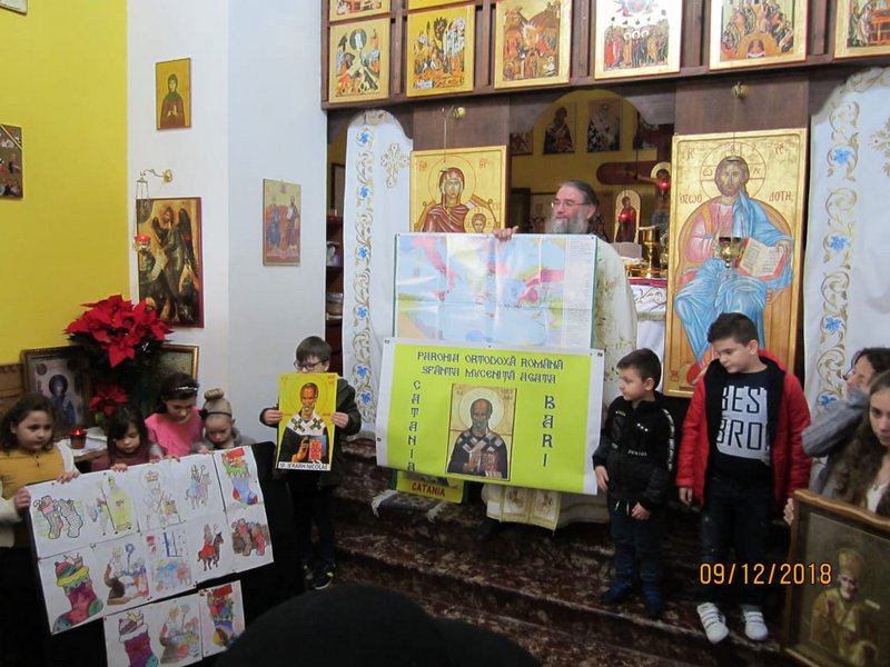 Momentul închinat Sfântului Nicolae s-a încheiat cu darurile, pe care sfântul cel drept și blând le-a adus păstorului sufletelor din Catania, pentru a le oferi copiilor, pentru că au fost cuminți, ascultători și credincioși.