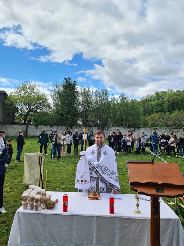 Cu binecuvântarea Preasfințitului Părinte Episcop Siluan și cu purtarea de grijă a Preasfințitului Părinte Vicar Atanasie de Bogdania, în ziua ÎNVIERII, comunitatea ucraineană ajunsă în urma războiului în teritoriul pinerolez ( 32 copii și 30 de adulți) au participat la slujba Vecerniei Învierii - cunoscută și ca " a doua Înviere". Evenimentul a fost organizat în colaborare cu Caritas Diocesana Pinerolese care ii găzduiește și s-a desfășurat în parohia Miradolo di Pinerolo. La începutul slujbei părintele Ciprian a împărțit lumina tuturor, iar la sfârșit, după ce participanții au cântat în limba ucraineană "Hristos a Înviat!" și câteva pricesne, s-au binecuvântat coșurile și toți cei prezenți: ucraineni, italieni și români s-au bucurat de bucatele tradiționale pascale salutându-se cu salutul: Hristos a înviat!