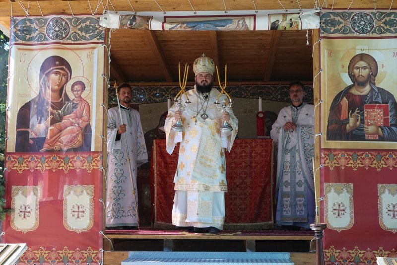 La încheiera slujbei, poporul, ce parcă nu mai dorea să părăsească „biserica de sub cerul liber”, a fost binecuvântat de Preasfințitul Părinte Atanasie prin stropirea cu agheazmă și prin dăruirea de iconițe.