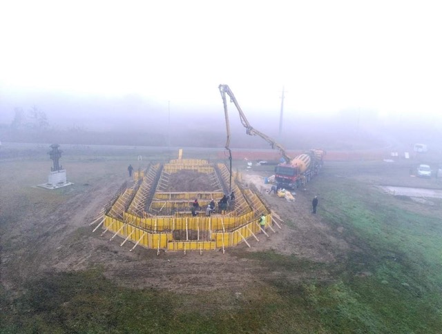După ce au fost efectuate săpăturile, s-a turnat cimentul de egalizare, apoi s-a pregătit fierul și cofrajul pentru pereții fundației, iar în data de 29/01/2024 s-a turnat betonul pentru ridicarea acestora. Urmează umplerea suprafeței interioare a fundației cu piatră spartă și apoi turnarea primei plăci.
