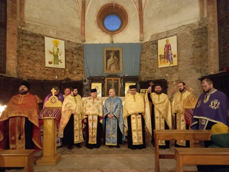 În ziua de 8 decembrie a avut loc Taina Sfântului Maslu în sobor de 10 preoți la Chiesa Santa Elena din laguna Venețiană.