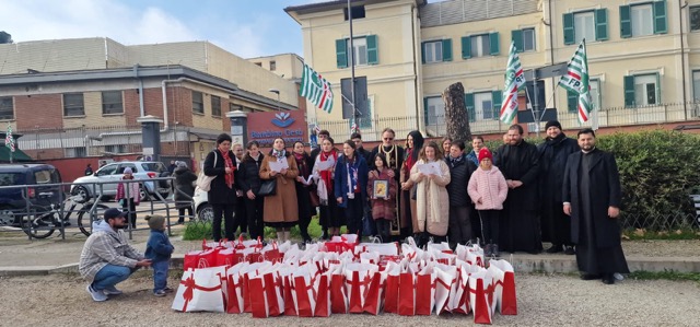 Cu binecuvântarea Preasfințitului Părinte Episcop Siluan al Episcopiei Ortodoxe Române a Italiei, un grup de colindători format din membrii Asociației San Lorenzo dei Romeni, alături de tinerii Nepsis sub conducerea Preacucernicului Părinte Vicar și totodată Președintele Asociației, Gheorghe Militaru de la parohia Ostia, Roma (V) împreună cu Preacucernicii Părinți și doamnele preotese din parohiile Tivoli, Valmontone, Montefiascone, Roma Pantano - Monte Compatri, Roma Prenestina însoțiți și de câțiva credincioși au adus vestea Nașterii Domnului nostru Iisus Hristos la copiii și părinții de la spitalul de pediatrie Bambino Gesù, precum și la cei aflați în centrele de primire (case di accoglienza) Peter Pan, Ronald McDonald și Casa Amica. La final, colindătorii au dăruit copiilor 130 de pachete cadou.