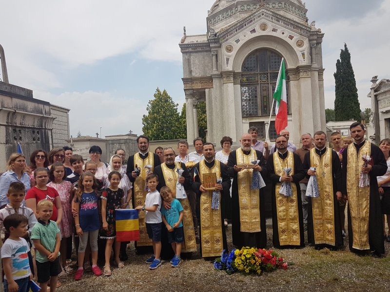 La marele praznic al Înălțării Domnului, în Protopopiatul Triveneto IV la cimitirul din Rovigo, s-a săvârșit slujba de pomenire a eroilor neamului și a soldaților români căzuți pe câmpurile de luptă în Primul Război Mondial. Slujba a fost oficiată de către un sobor de 7 preoți în prezența credincioșilor români. La sfârșitul parastasului, Părintele Protopop Gheorghe Verzea a ținut un cuvânt de învățătură despre eroii români care și-au dat viața lor ca noi să fim astăzi liberi, să fim Poporul Român. În cuvântul său a mai vorbit și despre importanța parastasului, o rugăciune puternică a Bisericii, care trebuie preluată de către copiii noștri ca și noi la rândul nostru să fim pomeniți.
