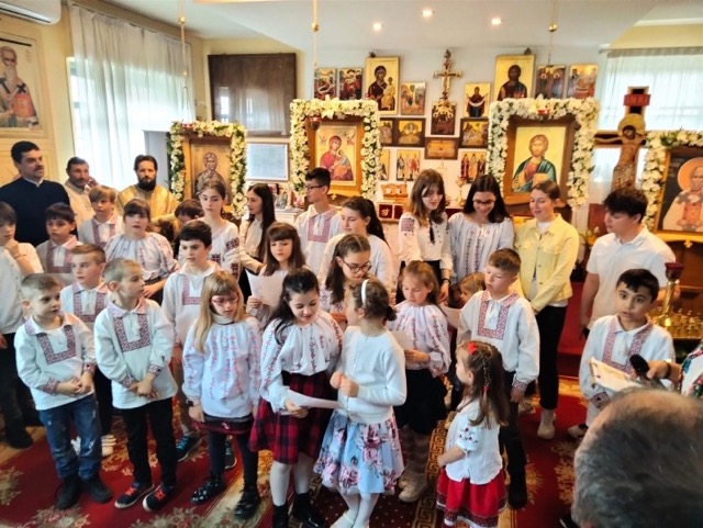 A urmat un program de poezie și cântec susținut de tinerii și copiii Școlii Parohiale, program dedicat părinților și bunicilor, membri ai familiei din leagănul copilăriei, perioadă remarcată prin inocență și curăție a inimii.