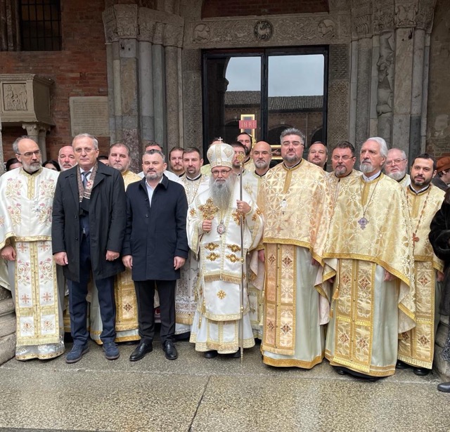 Vineri, 1 decembrie 2023, Preasfințitul Părinte Episcop Siluan al Episcopiei Ortodoxe Române a Italiei a săvârșit Dumnezeiasca Liturghie în Bazilica Sfântul Ambrozie din Milano, pe altarul sub care sunt așezate moaștele Sfântului Ierarh.