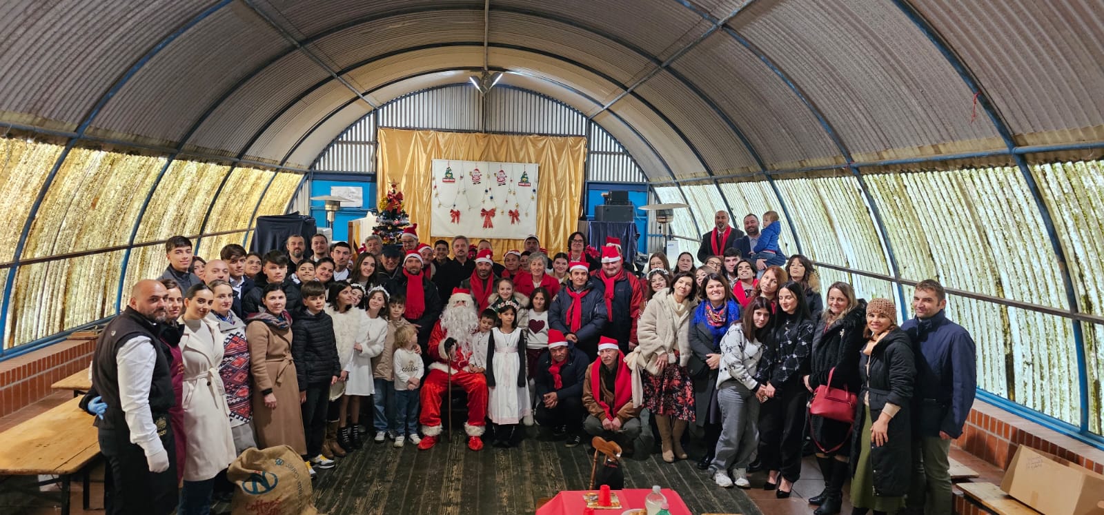 După Sfânta Liturghie, copiii parohiei au oferit o serbare de colinde, cu entuziasm curat și o bucurie care a umplut sufletele celor prezenți. A urmat prezența lui Moș Crăciun, care a dăruit copiilor daruri, iar această bucurie a celor mici a fost ca o icoană a darului pe care Dumnezeu Însuși ni-l face în Fiul Său: darul vieții, al iertării, al speranței. Dar prăznuirea nu s-a încheiat acolo. Dimpotrivă, a continuat în locul unde, de trei ani, comunitatea noastră încearcă să trăiască Nașterea Domnului „după Evanghelie”, nu doar „după obicei”.