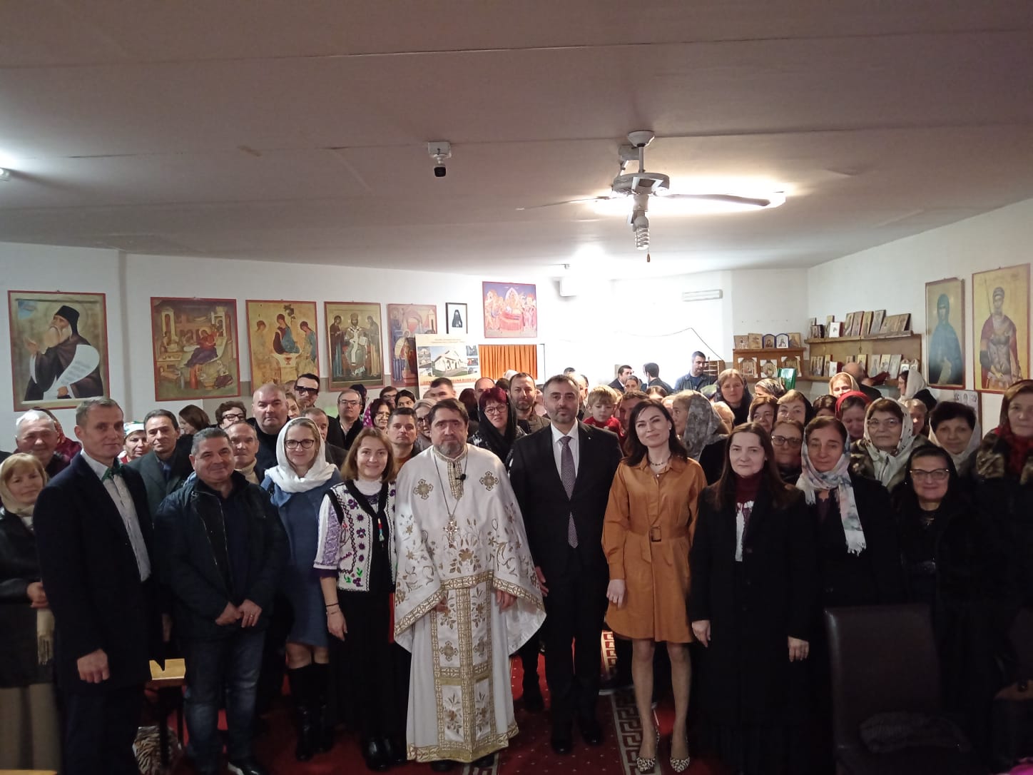 Părintele paroh Gheorghe Zavate a evocat momentele însemnate ale istoriei parohiei înființată în anul 2012, precizând faptul că se împlinesc zece ani de la sfințirea Altarului de către Preasfințitul Părinte Episcop Siluan. La finalul întâlnirii preoții și credincioșii au cântat colinde!